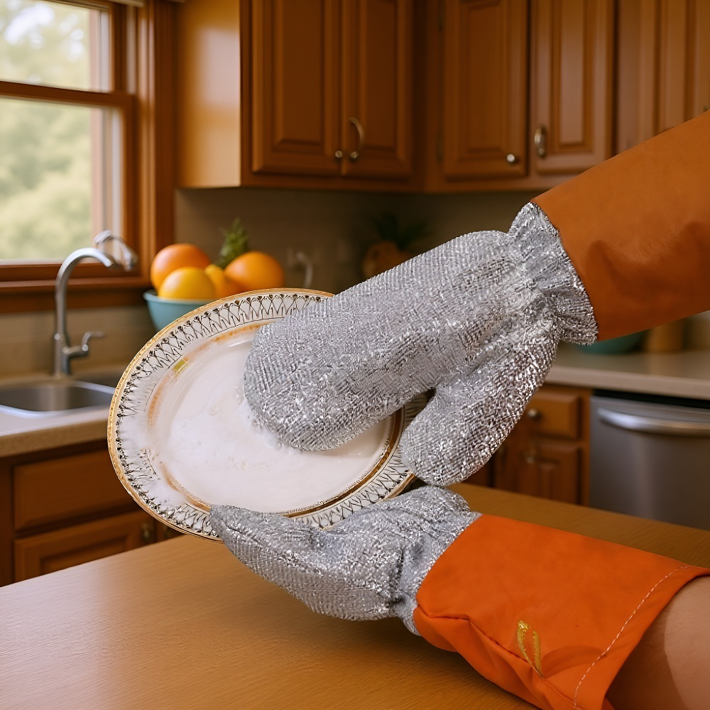頑固な汚れも簡単に落とせる!長持ちするシルバー糸入り手袋で、毎日の掃除がもっと快適に。